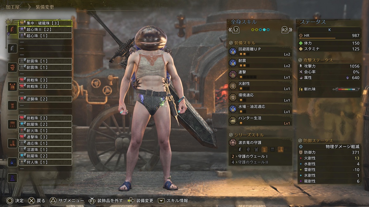 「整備3+守護のヴェール」により、耐久力が上がり、装衣を回しやすくなります(詳細は後述)。