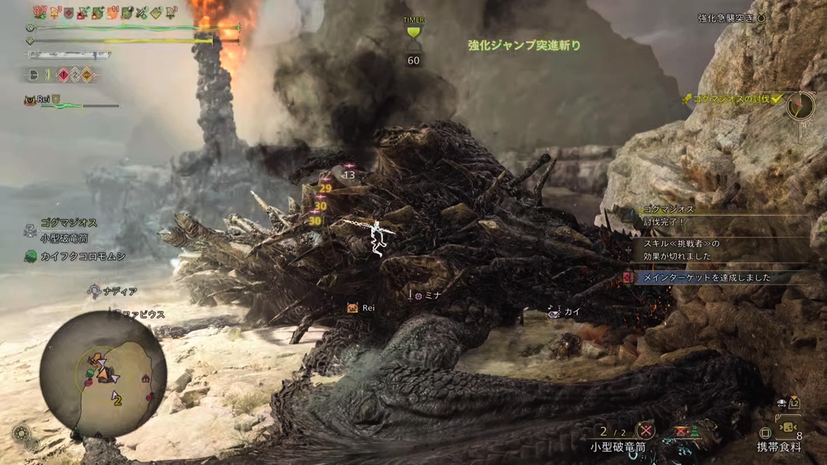 DPSチェック2回目以降の攻略法は、小型破竜筒を当てながら、ゴグマジオスを地面に叩き落とすことです。