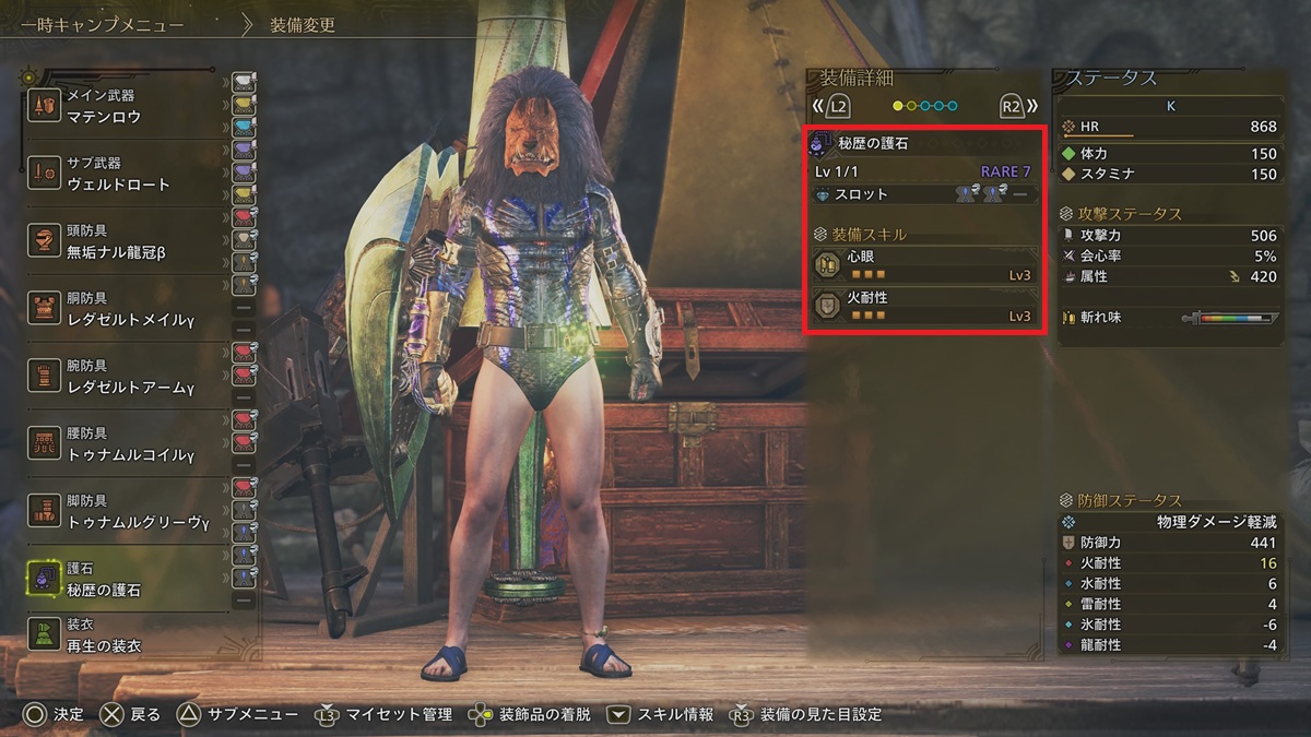 護石は「火耐性」さえあれば、生産でも大丈夫。