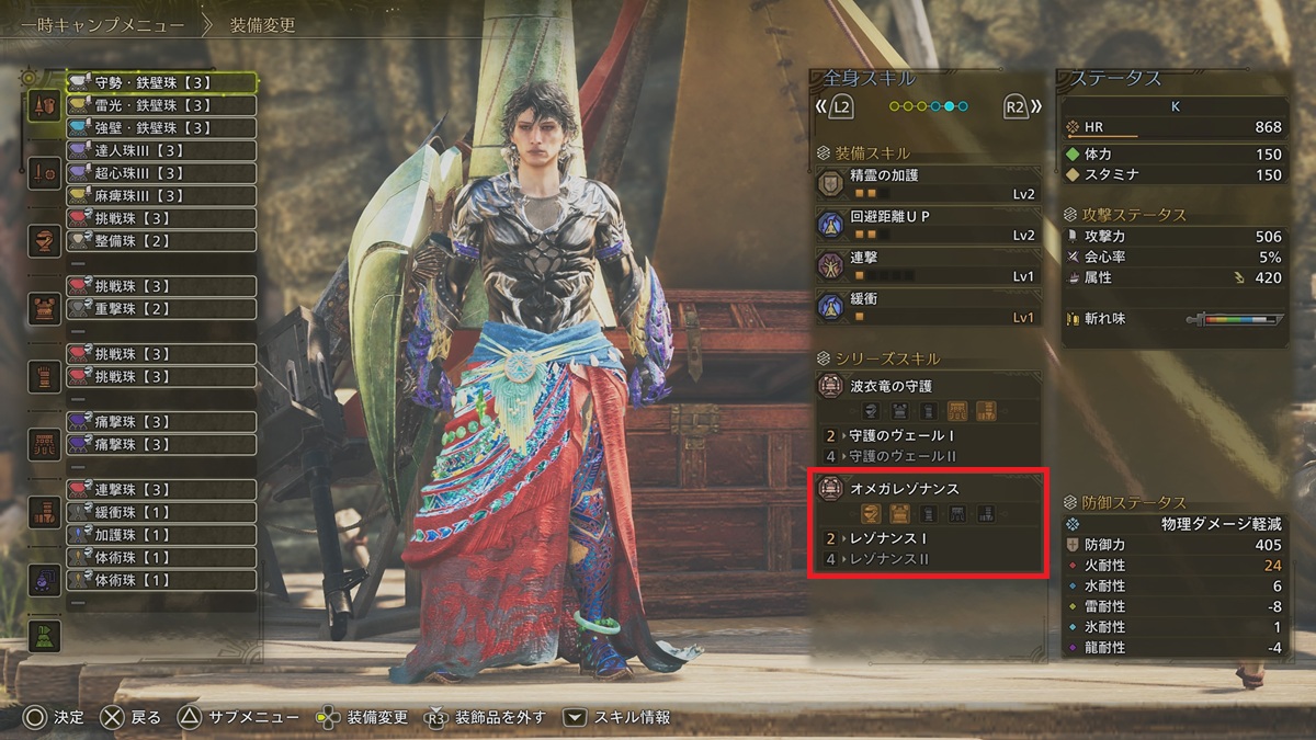 【MHWs】零式オメガ用ランス装備でほしいスキル
